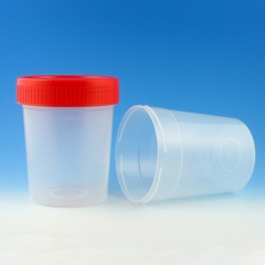 This 4 ounce specimen cup is manufactured from polypropylene and incorporates a high density polyethylene quarter turn screw cap. The container is graduated in ml and has a frosted area which can be used as a writing surface.